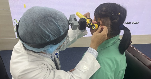 Tại đây, bác sĩ ghi nhận vành tai trái của chị bị nề đỏ, không đau, ống tai ngoài hẹp, không quan sát được màng nhĩ, đánh giá thính lực cho thấy tai trái nghe kém.